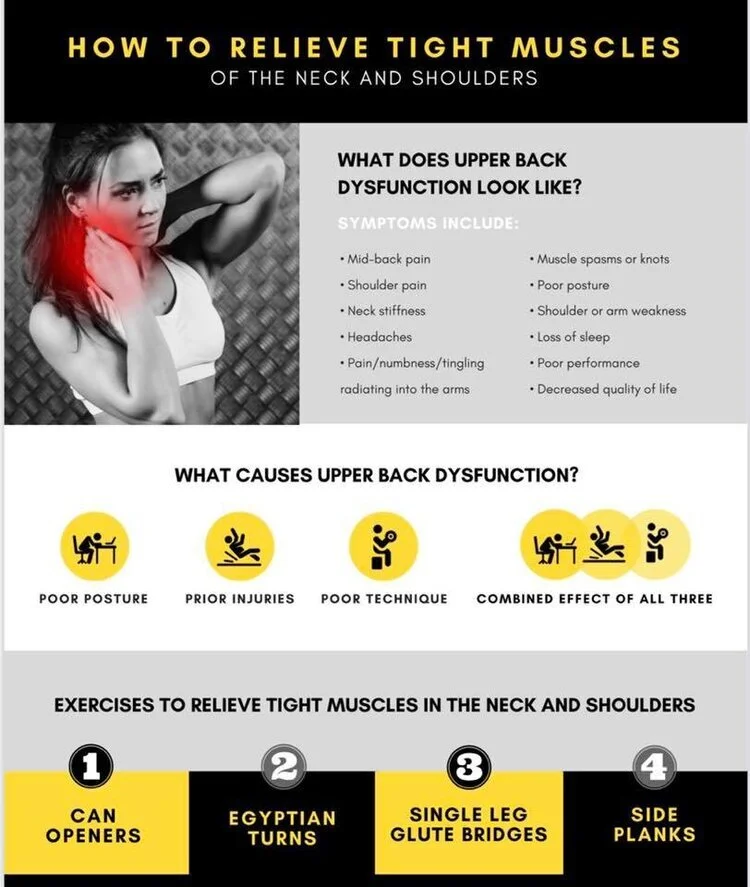 It is not uncommon to hear people talk about their tension and tight muscles in their neck and shoulders. Due to being so common, we should know how to fix this (assuming no medical conditions exist). Several things can lead to tight muscles in the neck and shoulders (upper back pain and dysfunction). These dysfunctions often result in pain, sleep loss, weakness, inability to do daily tasks, and an overall decrease in quality of life. Luckily, it’s easily manageable if you retrain and correct what’s going on in those areas.